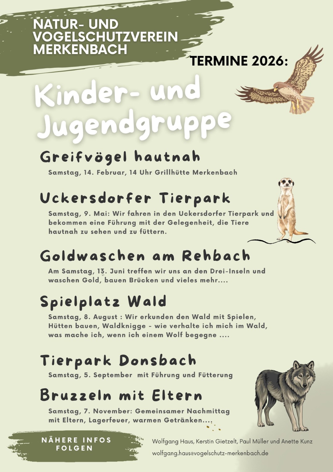 "Auf der Pirsch und Fährtensuche" war nach unserer Einschätzung eine erfolgreiche Veranstaltung und tolle Erfahrung. Der Merkenbacher Jagdpächter Rumpf hat uns über heimische Tiere und über Sinn und Zweck der Jagd und Hege informiert. Die Kinder waren wie immer wissbegierig und mit Begeisterung dabei. Konditionell top!!! Eure Kinder erkennen jetzt einen Wildwechsel, können die Spuren von Reh, Wildschwein und Hase deuten. Sie wissen jetzt was eine Mäuseburg ist und dass neben einer Suhle immer ein Malbaum zu finden ist. Zum Abschluss gab es gegrillte Wildbratwürstchen und Kinderpunsch.