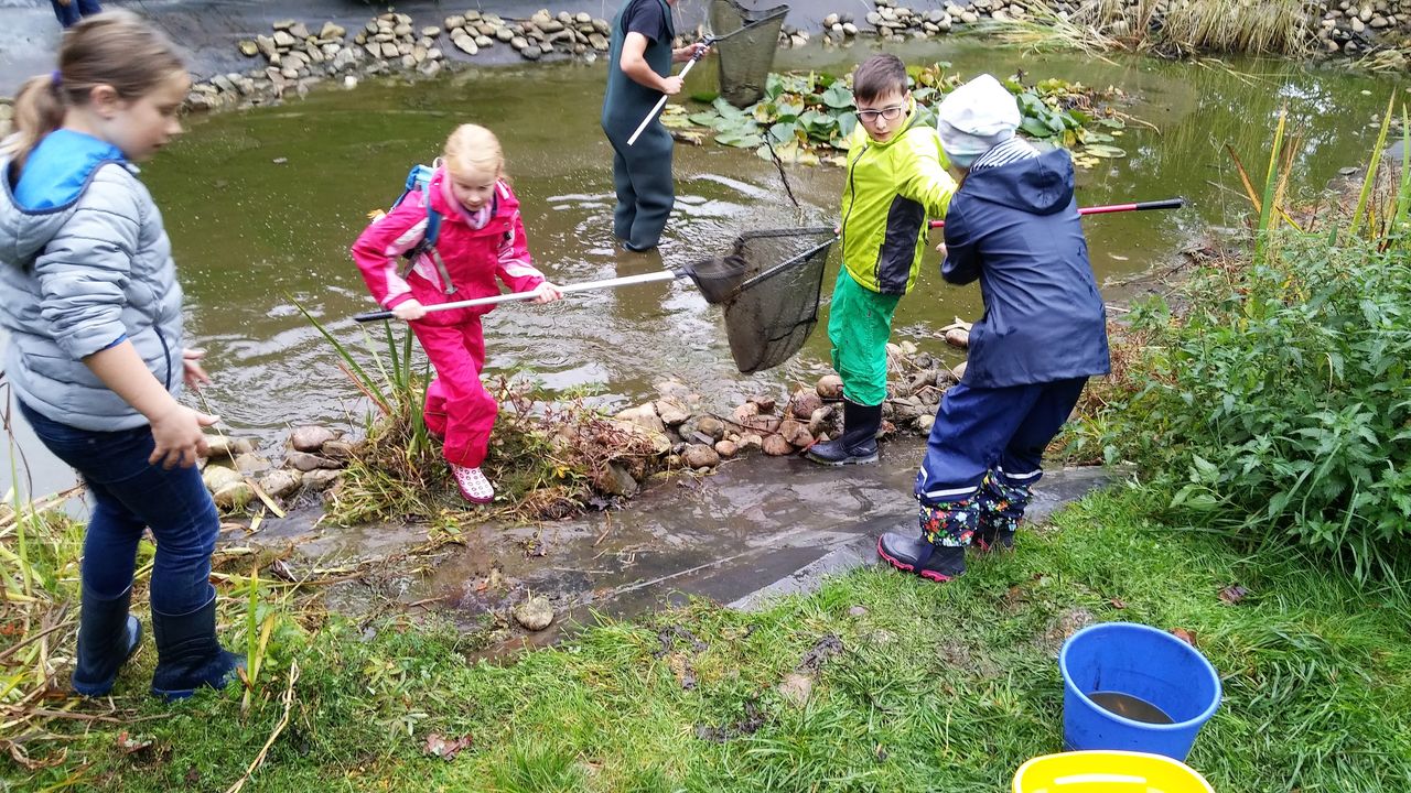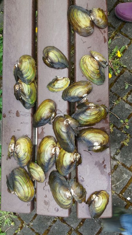 Bei herrlichem Wetter wurde wunschgemäss das Vogelschutzgebiet und Feuchtbiotop Katzengrube und der Merkenbacher Stauweiher besucht. Emma Lotta Haus hat ein "Art-Deco-Waldmaushotel" gebaut und in der Katzengrube platziert. Dort konnte man in einigen Nistkästen schon die Eiablage und den Nestbau erkunden. Froschlaich und erste Kaulquappen wurden erforscht. Das Brüten der Enten wollte man im Biotop nicht stören und ist schleunigst zum Stauweiher gewandert. Auf den Wiesen hat man sechs Fischreiher auf Mäusejagd sehen können. Am Stauweiher hatte Wolfgang Haus das sammeln von Muscheln versprochen. Dort angekommen waren aber erstmal die Enten mit den Küken die Attraktion. Die Kanada Gänse waren Dank Fütterung sehr zutraulich. Was keiner glauben wollte, hat man doch im Schlamm des Stauweihers die Reste von Teichmuscheln aus guten sauberen Zeiten gefunden und herausgefischt. Die Sammlung kann sich sehen lassen. Der Kommentar von Johanna Werner: "was es alles in Merkenbach gibt". Die Muscheln wurden am Brunnen sorgfältig gewaschen und als Trophäe mitgenommen. Beim nächsten Treffen im Mai geht es um Ameisen, Kompass, Quelle, Fuchs- und Dachs.