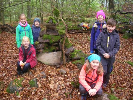 Entdeckertour am 8.10.2016 zur "Hirschberger Koppe" Bei angenehmen Herbstwetter haben Johanna, Emma, Lilly, Johanna, Leo, Josh und die Betreuer Roland Hopf und Wolfgang Haus die Hirschberger Koppe erklommen. Rund um den Gipfel gab es viel zu erkunden. Woher kommen die vielen Steine? Sind das die berühmten Hinkelsteine? Zur Erinnerung hat man ein Stein-Denkmal mit Inschrift hinterlassen. Auf dem Rückweg hat man noch einige Wildschweinsuhlen besichtigt. Ein sogenannter Harvester sorgte für einen High-Tech Abschluss. Ein großer Roboter mit einem freundlichen Mann stellte man fest. Als nächste Aktion ist eine Nachtwanderung geplant.